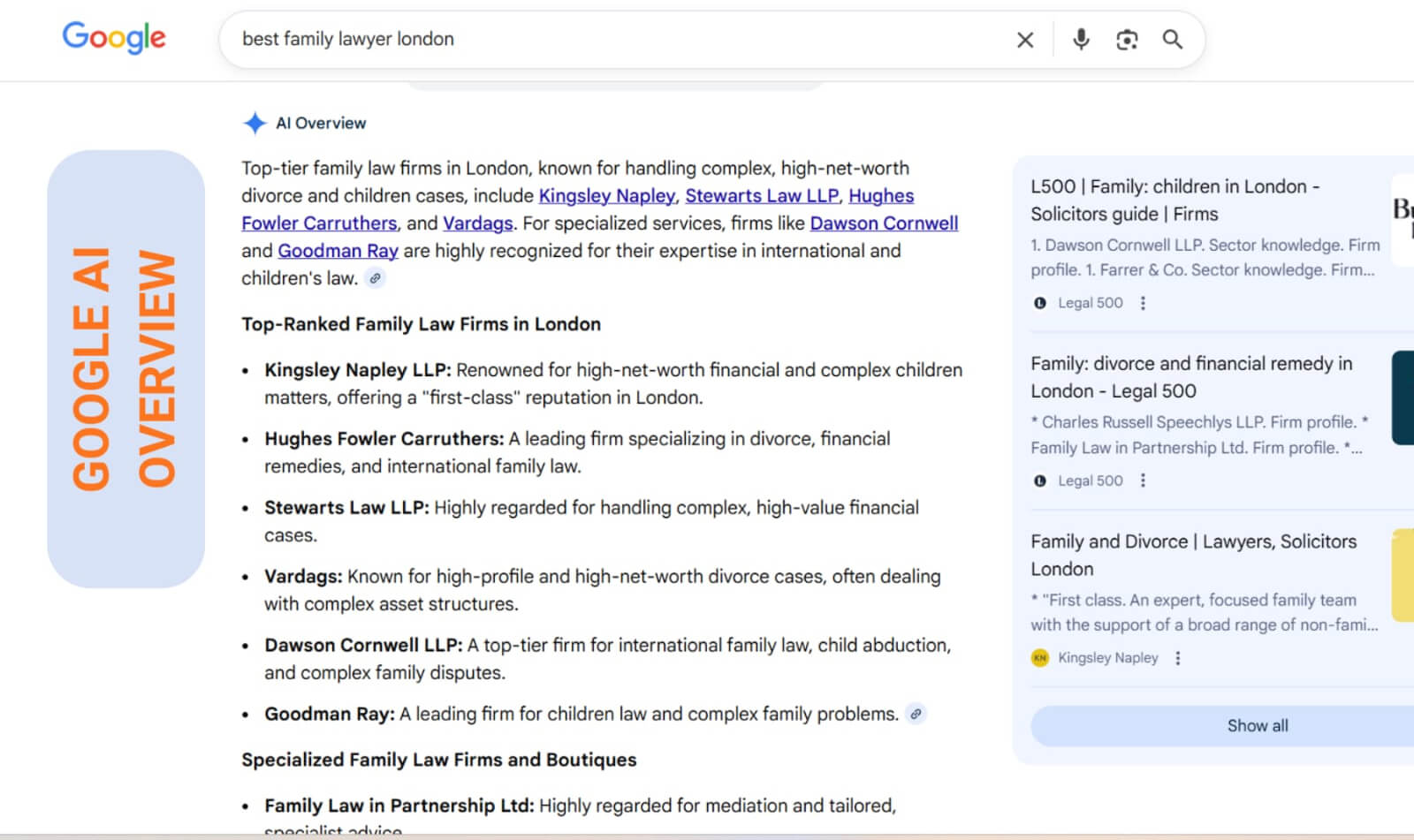 Now, when someone makes a search, Google AI Overviews and large language models (ChatGPT, Gemini, Perplexity, etc.) answer legal questions directly. They decide which sources are credible and surface a handful of firms as the trusted voices behind those answers.